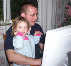 One day around Christmas I was working at my computer when Lindsay toddled up and said, “Whassat?,” pointing to the mouse. I said, “It’s a mouse,” momentarily forgetting that Lindsay was probably already familiar with a creature by that name and might now become confused. I showed her the cursor on the screen and showed her how when I moved the mouse, the little arrow moved, too.